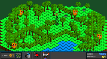 It's a game inspired by Into the Breach, but we didn't have time to implement any controllable characters. It's a turn based strategy game, focused around controlling a forest fire. You have several actions available, that can be used to stop the spread of the fire. Click the button on the left >> to advance to the next turn.